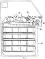 Фиг. 61 - вид сверху дверцы секции, покрывающей зону хранения, из которой удален лист, перемещающийся в направлении механизма заслонки рядом с периферийным механизмом транспортировки. FIG. 61 is a plan view of a door of a section covering a storage area from which a sheet has been removed moving in the direction of the shutter mechanism adjacent to the peripheral transport mechanism.