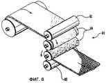 Фиг. 5 представляет собой вид сбоку пары уплотняющих валков и лист, который уплотняют, пропуская между этими валками. FIG. 5 is a side view of a pair of sealing rolls and a sheet that is sealed by passing between these rolls.