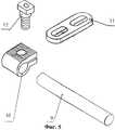 На фиг. 1 показано устройство в сборе; на фиг. 2 - схема чрескостного остеосинтеза позвоночника, вид сбоку; на фиг. 3 - схема чрескостного остеосинтеза позвоночника, вид сзади; на фиг. 4 - узел фиксации винта с цилиндрической головкой; на фиг. 5 - поперечная стяжка осевых стержней. In FIG. 1 shows a device assembly; in FIG. 2 is a side view of the transosseous spinal osteosynthesis; in FIG. 3 - diagram of transosseous osteosynthesis of the spine, rear view; in FIG. 4 - node fixing screw with a cylindrical head; in FIG. 5 - transverse screed axial rods.
