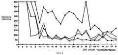 После трансплантации уровень глюкозы в крови каждого реципиента проверялся ежедневно или через день до достижения нормального диапазона; после этого уровень глюкозы в крови проверялся только 2-3 раза каждую неделю. Трансплантаты считались технически успешными, если содержание сывороточной глюкозы было < 200 мг/дл и оставалось таким при последующих кровопусканиях. Считалось, что трансплантат отторгнут, если концентрация сывороточной глюкозы поднималась выше 200 мг/дл после периода преходящей нормогликемии. Трансплантаты считались неудачными или ставшими "первично нефункционирующими", если уровень глюкозы в крови вообще не становился нормальным (т.е. постоянно оставался > 200 мг/дл). After transplantation, the blood glucose level of each recipient was checked daily or every other day until the normal range was reached; after that, the blood glucose level was checked only 2-3 times every week. Transplants were considered technically successful if the serum glucose content was <200 mg / dl and remained so during subsequent bloodletting. The graft was considered rejected if the concentration of serum glucose rose above 200 mg / dl after a period of transient normoglycemia. Transplants were considered unsuccessful or became “primarily non-functional” if the blood glucose level did not become normal at all (i.e., it remained constant> 200 mg / dl).