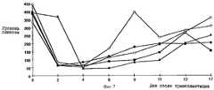 На фиг. 6 показаны уровни глюкозы у мышей, больных диабетом, которым были пересажены свободные панкреатические островки. In FIG. Figure 6 shows glucose levels in mice with diabetes, which were transplanted free pancreatic islets.