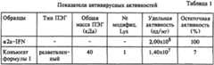 Антивирусную активность in vitro α2a-IFN и конъюгата формулы I, полученного по описанной в примере 1.А методике, определяли с помощью биологического анализа культуры клеток, используя бычьи почечные клетки линии Madin-Darby (MDBK), зараженные вирусом везикулярного стоматита (Rubinstein и др. , см. выше). Показатели антивирусных активностей приведены в таблице 1 наряду с соответствующими остаточными активностями в процентах по отношению к исходному IFN.Example 3