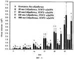 Фиг. 6: Противоопухолевая активность α2a-IFN, изученная на лишенных шерсти мышах, которым подкожно имплантировали почечные клетки человека линии G402. Всем животным за 45 дней до начала эксперимента (день-45) подкожно вводили имплантат, содержащий 2х106 почечных клеток человека линии G402. Обработку с помощью α2a-IFN начинали в день 0 эксперимента. Указанные количества (10, 20, 40 или 100 мкг) α2a-IFN вводили подкожно в противоположный относительно опухоли бок, 3 раза в неделю в течение 5-недельного периода.FIG. 6: Antitumor activity of α2a-IFN, studied on woolless mice implanted subcutaneously with human kidney cells of the G402 line. All animals 45 days before the start of the experiment (day-45) were injected subcutaneously with an implant containing 2x106 human kidney cells of the G402 line. Treatment with α2a-IFN was started on
