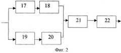 Структура первого, второго, третьего и четвертого блоков вычисления дисперсии проиллюстрирована на фиг. 2. Блок вычисления дисперсии содержит первый и второй квадраторы 17, 20, второе, третье и четвертое интегрирующие звенья соответственно 18, 19 и 22 и вычитатель 21. The structure of the first, second, third, and fourth dispersion calculation units is illustrated in FIG. 2. The dispersion calculation unit contains the first and