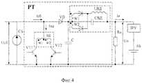 Указанное устройство, в дальнейшем регулятор тока (РТ), регулирует избыточную мощность СБ путем ее закорачивания на транзисторные ключи в функции выходного напряжения с использованием широтно-импульсной модуляции, т.е. режим 1 (в дальнейшем ШИМ РТ). The specified device, hereinafter the current regulator (RT), regulates the excess power of the SB by shorting it to transistor switches as a function of the output voltage using pulse-width modulation, i.e. mode 1 (hereinafter PWM RT).