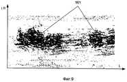 на фиг.9 изображено графическое отображение измеренных данных о толщине стенки трубопровода для некоторого участка обследованного трубопровода, позволяющее идентифицировать коррозионные потери металла.In FIG. 1 shows an in-line ultrasonic flaw detector in one of the designs;