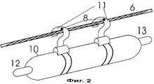 а также провод 6 и датчик 8, встроенный в средство 11 (датчик 7 на фиг.2 не показан, а датчик 8 состоит из двух частей).Figure 2 shows: