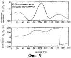На Фиг.6 представлена зависимость величины и фазы отношения двух давлений Р1/Р3 от частоты для импеданса излучения, равного 1,0, 50% водной фракции и осевых свойствах согласно Фиг.4.Figure 6 presents the dependence of the magnitude and phase of the ratio of the two pressures P1 / P3 on the frequency for the radiation impedance equal to 1.0, 50% of the aqueous fraction and axial properties according to Figure 4.