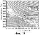 На Фиг.13 представлена контурная диаграмма зависимости скорости звука от осевого числа Маха и от члена ошибки для 5% водной фракции, числа Маха, равного 0,05, на частоте 25 Гц.On Fig presents a contour diagram of the dependence of the speed of sound on the axial Mach number and on the error term for 5% of the aqueous fraction, the Mach number equal to 0.05, at a frequency of 25 Hz.