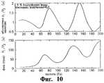 На Фиг.9 представлена зависимость величины и фазы отношения двух давлений Р1/P3 от частоты для импеданса излучения, равного 0,5, 50% водной фракции и постоянных осевых свойств смеси.Figure 9 shows the dependence of the magnitude and phase of the ratio of the two pressures P1 / P3 on the frequency for the radiation impedance equal to 0.5, 50% of the aqueous fraction and constant axial properties of the mixture.