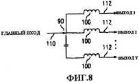 фиг.8 изображает обобщенную схему, имеющую главный вход, который можно разделить на любое число выходов, согласно изобретению;Fig.8 depicts a generalized diagram having a main entrance, which can be divided into any number of outputs according to the invention;