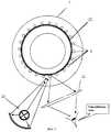 Диски 4 и 5 скреплены таким образом, что отверстия 6 верхнего диска 4 находятся точно над пазами 7 нижнего диска 5 и образуют гнезда для вертикального размещения капилляров 8 при горизонтальном положении ротора 1. Соединение съемного ротора 1 с осью 2 шагового двигателя 3 осуществляется посредством сцепляющего колеса 9, жестко закрепленного на оси 2 двигателя 3. Шаговый двигатель 3 закреплен в штативе, обеспечивающем горизонтальность установки плоскости ротора 1. Управление шаговым двигателем 2 осуществляется стандартным образом в двух режимах: а) пошаговом - число командных импульсов, поступающих на обмотки двигателя после однократного нажатия управляющей клавиши, обеспечивает поворот ротора, соответствующий перемещению на 1 капилляр; б) непрерывного вращения с угловой скоростью не более 50 об/мин.The