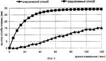 Из представленных данных видно, что значения величины оседания эритроцитов для исследованных образцов крови, полученные предлагаемым способом, позволяют определить максимальные величины оседания эритроцитов в относительно короткие сроки за счет ускорения оседания эритроцитов. Кривые динамики оседания эритроцитов пробы крови №2, полученные классическим и предлагаемым способами, представлены на фиг.4.From the presented data it can be seen that the values of the erythrocyte sedimentation for the studied blood samples obtained by the proposed method allow us to determine the maximum erythrocyte sedimentation values in a relatively short time due to the acceleration of erythrocyte sedimentation. The curves of erythrocyte sedimentation dynamics of blood sample No. 2, obtained by the classical and proposed methods, are presented in figure 4.