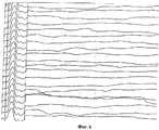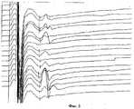 - фиг.6 - Иллюстрация к примеру 3: ЭНМГ-протокол до лечения (динамика нейрональной активности (F-волн) спинного мозга на уровне С7): при подаче 20 стимулов ответных F-волн не зарегистрировано (полный блок проводимости);- 6 - Illustration for example 3: ENMG protocol before treatment (dynamics of neuronal activity (F-waves) of the spinal cord at C7 level): when 20 stimuli were applied, no response F-waves were recorded (full block of conductivity);
