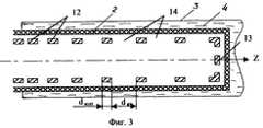На фигуре 2 показана конфигурация двухпроводной линии для случая дискретного удлинения проводника для микроволнового нагревателя по его первому варианту.Figure 2 shows the configuration of a two-wire line for the case of discrete extension of the conductor for a microwave heater in its first embodiment.