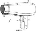 фиг.4 - иллюстрация, показывающая регулируемые лопатки на заднем конце имеющей удлиненную форму части полого корпуса вентилятора для сушки волос, предназначенные для регулирования количества воздуха, поступающего в данный узел;4 is an illustration showing adjustable blades at the rear end of an elongated part of a hollow fan body for drying hair, designed to control the amount of air entering this unit;