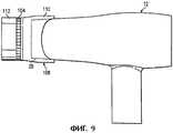 фиг.9 - иллюстрация, показывающая регулировочное устройство такого типа, который представлен на фиг.6, 7 и 8, но который может устанавливаться в порядке модернизации на расположенное спереди сопло уже существующего вентилятора для сушки волос;Fig.9 is an illustration showing an adjusting device of the type shown in Fig.6, 7 and 8, but which can be installed in the order of modernization on the front nozzle of an existing fan for drying hair;