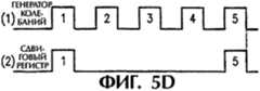 фиг.5D - иллюстрация, показывающая форму волны 1 на выходе генератора колебаний и форму волны 2 на выходе контура с соотношением между ними 1:4 для сообщения импульсов нагревательному элементу;Fig. 5D is an illustration showing the