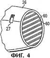 Фиг.4 представляет собой изображенный в увеличенном масштабе вид заднего конца 26 вентилятора 10 для сушки волос, показанного на фиг.1. Следует отметить, что на этом конце имеется множество регулируемых лопаток 60, которые могут сдвигаться ближе друг к другу и раздвигаться дальше друг от друга при перемещении рычажка 27 в ту или иную сторону, благодаря чему обеспечивается регулирование количества воздуха, поступающего в часть 12 полого корпуса, имеющую удлиненную форму. Такое регулируемое отверстие для впуска воздуха снабжается рядом параллельных лопаток 60, положение которых может регулироваться в пределах от такого положения, в котором расстояние между ними будет минимальным, что обеспечит поступление лишь минимального воздушного потока в часть полого корпуса, имеющую удлиненную форму, и вплоть до такого их положения, в котором расстояние между лопатками будет максимальным, что обеспечит тем самым поступление максимального воздушного потока в часть 12 полого корпуса, имеющую удлиненную форму.Figure 4 is an enlarged view of the