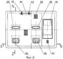 Переносной контейнер выполнен со ступенчатой верхней панелью 41 с выступающим над боковыми полками 48 двухступенчатым центральным отсеком 49 и оснащен стойками 50, соединяющими указанные боковые полки с шасси 47. Принтер 40 размещен на лицевой панели нижней ступени 51 центрального отсека (третья функциональная зона). Первая и вторая функциональные зоны размещены на лицевой панели верхней ступени 52 центрального отсека над соответствующими вакуумными агрегатами. На лицевой панели верхней ступени 52 центрального отсека имеются вентиляционные решетки 53, например щелевые. Ниппели 42 и 43 размещены на задней стенке 54 центрального отсека в зонах, прилегающих к соответствующему вакуумному агрегату.The portable container is made with a stepped