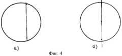 Излучение из второго торца лазера 6 проходит через цилиндрическую линзу 7, которая преобразует его в плоский расходящийся пучок света, который после отражения от подвижного второго отражателя формирует на объекте светящуюся полоску, которая перемещается по его поверхности параллельно самой себе при вращении второго отражателя 8. В момент совпадения этой полоски с центром светящегося кольца, подсвечиваемого отраженным от светоделителей 5 и 9 лучом лазера, отсчет по шкале устройства несет информацию о расстоянии от объекта до рентгеновского излучателя (фиг.4, а и б).The radiation from the second end of the laser 6 passes through a cylindrical lens 7, which converts it into a flat diverging beam of light, which after reflection from the movable second reflector forms a luminous strip on the object, which moves along its surface parallel to itself when the second reflector 8 is rotated. At the moment if this strip coincides with the center of the luminous ring illuminated by a laser beam reflected from