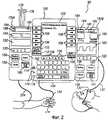 Центральный интерфейсный блок 100 также содержит множество непрограммируемых клавиш 104 для ввода числовых данных и, наряду с функциональными клавишами 106, для ввода эксплуатационных команд. Кроме того, центральный интерфейсный блок 100 далее содержит непрограммируемую клавишу 108 переключателя POWER ON (ПИТАНИЕ ВКЛЮЧЕНО) для подключения к или отключения электрического питания от центрального интерфейсного блока 100, непрограммируемую клавишу 110 PAUSE (ПАУЗА) для временного исключения звуковых функциональных возможностей центрального интерфейсного блока 100 и непрограммируемую клавишу 112 OPTIONS (ВОЗМОЖНОСТИ ВЫБОРА) для обеспечения доступа пользователя к системе или к возможностям выбора функциональных блоков. Центральный интерфейсный блок 100 может далее содержать внешний компьютерный индикатор 114 для указания на то, что система 90 контроля за пациентом сообщается с совместимой внешней компьютерной системой, внешний индикатор 116 электропитания, предназначенный для того, чтобы указывать на то, что центральный интерфейсный блок 100 подсоединен к и работает от внешнего источника энергии, и внутренний индикатор 118 электропитания, предназначенный для того, чтобы указывать, что центральный интерфейсный блок 100 работает с использованием внутреннего источника энергии. Центральный интерфейсный блок 100 может также выполнять функцию контролирования устойчивостью против вибрации (на чертежах не показана), которая может блокировать работу предопределенного набора средств управления.The