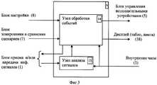Блок 6 принятия решений (фиг.3) выполнен с соединенными между собой узлом 14 обработки событий и узлом 15 анализа сигналов.Block 6 decision-making (figure 3) is made with