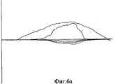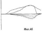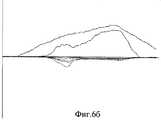 Неизмененный участок легкого пропальпирован исследователем. Случай идентифицирован как мягкая равномерно размазанная студнеобразная пластичная структура. Образец помещен в патентуемое устройство, осуществлено измерение №5. На представленном графике (фиг.6а) ниже горизонтальной линии видно, что линии существенно между собой не расходятся, что свидетельствует об однородности объекта. Материал объекта мягкий (плотность 19, неоднородность 31).The unchanged area of the lung is palpated by the researcher. The case is identified as a soft, uniformly smeared gelatinous plastic structure. The sample is placed in a patented device, measurement No. 5 is carried out. On the presented graph (figa) below the horizontal line it is seen that the lines do not diverge significantly from each other, which indicates the uniformity of the object. The material of the object is soft (density 19, heterogeneity 31).