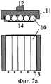 На фиг.2 показаны два варианта реализации тактильного датчика. Верхние рисунки представляют сечение, перпендикулярное плоскости фиг.1; нижние рисунки - вид снизу. Датчик, представленный на фиг.2а, имеет одномерную чувствительную структуру, в которой воздушные полости 10 выполнены из мягких полимерных трубок, запаянных с одной стороны, а с другой их стороны выведены более жесткие трубки 13 меньшего диаметра для соединения с датчиками давления. Такое исполнение оправдано в том случае, когда исследуются образцы стандартных размеров вытянутой формы. Датчик, представленный на фиг.2б, имеет двумерную чувствительную структуру, в которой воздушные полости 10 имеют сферическую форму. Такое исполнение позволяет исследовать образцы произвольной геометрической формы. Для обоих вариантов воздушные полости зафиксированы на опорной пластине 11, имеющей резьбовую часть 12 для соединения с силовым датчиком. Пространство между полостями заполнено упругим материалом, который образует плоскую чувствительную поверхность 14. Размеры воздушных полостей выбираются таким образом, чтобы обеспечить нужную разрешающую способность датчика.Figure 2 shows two embodiments of a tactile sensor. The upper figures represent a section perpendicular to the plane of FIG. 1; bottom figures - bottom view. The sensor shown in Fig. 2a has a one-dimensional sensitive structure in which the