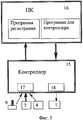 На фиг.3 приведена структура системы управления устройства. Ее центральным элементом является контроллер 15, обеспечивающий связь с аппаратурой и персональным компьютером (ПК) 16. Контроллер имеет аналого-цифровой преобразователь 17, к которому подключены выходы датчиков давления 5, силы 4 и задающего потенциометра 9, и широтно-импульсный модулятор 18, на выходе которого формируется задающий сигнал для серводвигателя 1.Figure 3 shows the structure of the control system of the device. Its central element is the