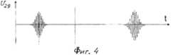 С выхода 9.М волоконного светоделителя 7 излучение направляется в блок 14 формирования сигналов, соответствующих границам D1 и D2 диапазона измерений. В процессе модуляции оптической разности хода лучей в двухлучевом интерферометре 3 на выходе фотоприемника 29 будут наблюдаться два сигнала U29 (фиг.4), максимумы которых будут соответствовать моментам времени, когда разность длин плеч двухлучевого интерферометра 3 ΔL=D1 равна оптической толщине интерферометра 27 Фабри-Перо и моменту времени, когда разность длин плеч двухлучевого интерферометра 3 ΔL=D2 равна оптической толщине интерферометра 28 Фабри-Перо. Следовательно отпадает необходимость в периодической градуировке устройства при длительной его работе.From the