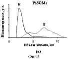 На хроматографическую колонку наносят пробу сульфоксида (0.1-0.2 ммоль), растворенную в 0.2 мл элюента (0.01 М раствор DMF в СН2Cl2). Отбирают фракции по 0.5 мл, объемная скорость прохождения элюента примерно 2 мл/час. В некоторых экспериментах после отбора примерно 5 мл элюата увеличивают полярность (используют 1 об.% раствор DMF в СН2Cl2). В каждой из отобранных фракций с помощью1Н ЯМР по внутреннему стандарту (трихлорэтилен) определяют содержание сульфоксида. Энантиомерные избытки во фракциях определяют по1Н ЯМР с добавлением Eu(hfc)3 в CCl4. Используя экспериментальные данные о содержании сульфоксидов и энантиомерных избытках во фракциях, строят зависимость концентрации сульфоксидов в пробах от объема элюата.A sample of sulfoxide (0.1-0.2 mmol) dissolved in 0.2 ml of eluent (0.01 M solution of DMF in CH2 Cl2 ) is applied to the chromatographic column. Selected fractions of 0.5 ml, the volumetric flow rate of the eluent of approximately 2 ml / hour. In some experiments, after collecting about 5 ml of eluate, the polarity is increased (use a 1 vol.% Solution of DMF in CH2 Cl2 ). In each of the selected fractions, the sulfoxide content was determined using1 H NMR according to internal standard (trichlorethylene). Enantiomeric excesses in fractions are determined by1 H NMR with the addition of Eu (hfc)3 in CCl4 . Using experimental data on the content of sulfoxides and enantiomeric excesses in fractions, the dependence of the concentration of sulfoxides in the samples on the volume of the eluate is constructed.