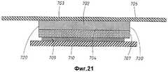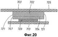 На фиг.19-21 показана гигиеническая прокладка 701 с почти такой же структурой, как у гигиенической прокладки 601 по фиг.16-18. Следовательно, нумерация различных элементов гигиенической прокладки 701 на фиг.19-21 выполнена по аналогии с нумерацией, используемой при описании гигиенической прокладки 601 по фиг.16-18.Figs. 19-21 show the