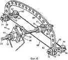 Одним из возможных вариантов зажима пары спиц 39, 40 (фиг.4, 5) является двойной загиб их концов. При этом фиксируемые зажимным элементом 8 и дополнительным зажимным элементом 11 концы параллельны, что позволяет перераспределять силы, прикладываемые в процессе осуществления компрессии или дистракции костных фрагментов.One of the possible options for clamping a pair of