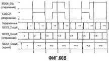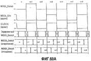 Фиг.60A, 60B и 60C - различные возможности хронирования двух сигналов данных и MDDI_Stb относительно друг друга, а именно идеальная, с опережением и с задержкой соответственно.60A, 60B, and 60C show various timing capabilities of two data signals and MDDI_Stb with respect to each other, namely, ideal, leading and delayed, respectively.