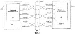 Варианты осуществления изобретения в данном описании относятся к протоколу цифровых сигналов и процессу для передачи или переноса сигналов между устройством-хостом и устройством-клиентом при высоких скоростях передачи данных. В частности, раскрытие относится к технологии переноса мультимедиа и других типов цифровых сигналов от устройства-хоста или устройства управления на устройство-клиент для представления или отображения конечному пользователю с использованием маломощного механизма переноса с высокой скоростью передачи данных, который можно применять как внутреннее и внешнее устройство.Embodiments of the invention herein relate to a digital signal protocol and a process for transmitting or transferring signals between a host device and a client device at high data rates. In particular, the disclosure relates to a technology for transferring multimedia and other types of digital signals from a host device or a control device to a client device for presentation or display to an end user using a low-power transfer mechanism with a high data transfer rate, which can be used as an internal and external device .