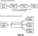 В других аспектах некоторых вариантов осуществления изобретения устройство-хост содержит беспроводное устройство связи, например беспроводной телефон, беспроводной КПК или портативный компьютер, в котором размещен беспроводной модем. Обычное устройство-клиент содержит портативный видеодисплей, например миниатюрное устройство отображения и/или портативную систему представления аудио. Кроме того, хост может использовать средство или элементы хранения для хранения представления или мультимедийных данных, подлежащих передаче, для представления пользователю устройства-клиента.In other aspects of some embodiments of the invention, the host device comprises a wireless communication device, such as a cordless telephone, wireless PDA, or laptop computer that hosts a wireless modem. A typical client device includes a portable video display, such as a miniature display device and / or a portable audio presentation system. In addition, the host can use the tool or storage elements to store the presentation or multimedia data to be transmitted for presentation to the client device user.