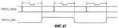 Фиг.47 - соотношение на входе приемника хоста между хронированием передаваемых данных и передними и задними фронтами стробирующих импульсов.Fig - the ratio at the input of the host receiver between the timing of the transmitted data and the leading and trailing edges of the strobe pulses.