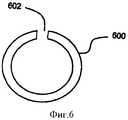 Обратимся теперь к Фиг.6, которая представляет собой схематическое изображение предохранителя от пыли, который используют с кассетой устройства, показанного на Фиг.1 и 2. Показан предохранитель 600 от пыли, имеющий предпочтительно форму кольца и имеющий зазор 602. Предохранитель 600 от пыли предпочтительно прочно прикрепляют к стержневому устройству 116 (Фиг.1А), и он покрывает все отверстия, которые находятся в кассете 102 со стороны поступления жидкости, за исключением отверстия со стороны поступления жидкости, которое ведет к игле, находящейся в положении 202 для ввода иглы в действие (Фиг.2А). Предохранитель 600 от пыли предпочтительно защищает иглы 114 от воздействия частиц, находящихся в воздухе. Тонкое покрытие (не показанное), предпочтительно изготавливаемое из бумаги, можно применять также для покрытия кассеты 102 со стороны проведения инъекции, делая возможным, чтобы иглы 114 протыкали тонкое покрытие, когда они входят в полость 200, одновременно защищая иглы 114 от пыли перед использованием. Тонкое покрытие может также выполнять роль печатных инструкций для использования устройства.Turning now to FIG. 6, which is a schematic illustration of a dust fuse that is used with the cartridge of the device shown in FIGS. 1 and 2. A