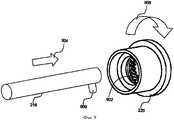 Обратимся теперь к Фиг.9, которая представляет собой упрощенную иллюстрацию вращательного механизма, который используют с кассетой устройства, показанного на Фиг.1 и 2. На Фиг.9 показан внутренний стержень 216 (Фиг.2А), который имеет шип 900, предпочтительно выступающий вниз от конца стержня 216 предельно близко к передвижчику 220, на котором можно монтировать кассету (не показанную). Передвижчик 220 имеет предпочтительно серию зубов 902 зубчатого колеса, предпочтительно располагающихся на его внутренней окружности под углом по отношению к продольной оси стержня 216. Когда стержень 216 перемещается поступательно по направлению стрелки 204, шип 900 входит в зацепление с зубом 902 зубчатого колеса (Фиг.2А), которое, будучи установлено под углом, заставляет передвижчик 220 вращаться в направлении стрелки 906.Turning now to FIG. 9, which is a simplified illustration of the rotary mechanism that is used with the cartridge of the device shown in FIGS. 1 and 2. FIG. 9 shows an inner shaft 216 (FIG. 2A) that has a
