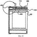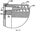 Обратимся теперь к Фиг.4А и 4В, которые представляют собой частичные изображения сбоку в поперечном разрезе кассеты устройства, иллюстрируемого на Фиг.1 и 2, на которых показана единичная полость для иглы в кассете перед вводом иглы в действие, к Фиг.4С и 4D, которые представляют собой частичные изображения сбоку в поперечном разрезе кассеты устройства, иллюстрируемого на Фиг.1 и 2, на которых показана единичная полость для иглы в кассете во время ввода иглы в действие, и к Фиг.4Е и 4F, которые представляют собой частичные изображения сбоку в поперечном разрезе кассеты устройства, иллюстрируемого на Фиг.1 и 2, на которых показана единичная полость для иглы в кассете после возвращения иглы в кассету. Каждая полость 200 для иглы (Фиг.2А) предпочтительно включает пружину 400 для иглы, сцепленную вокруг иглы 114 для облегчения возвращения иглы 114 назад в полость 200 после ее использования. Пружина 400 предпочтительно сжимается со стороны наружной стенки 404 полости 200 для иглы, когда шприц 210 выталкивает иглу 114 из полости 200 для иглы. Когда шприц 210 втягивается, сжимающее усилие снижается, делая возможным, чтобы с помощью пружины 400 игла 114 была возвращена назад в полость 200.Turning now to FIGS. 4A and 4B, which are partial cross-sectional side views of the cartridge of the device illustrated in FIGS. 1 and 2, which show a single cavity for a needle in a cartridge before putting the needle into operation, FIGS. 4C and 4D which are partial cross-sectional side views of the cartridge of the device illustrated in FIGS. 1 and 2, showing a single cavity for a needle in a cartridge during insertion of a needle, and FIGS. 4E and 4F, which are partial images on the side in popper sectional view of the cassette-screw device illustrated in Figures 1 and 2, which show the unit in the cavity of the needle cassette after the return of the needle into the cartridge. Each needle cavity 200 (FIG. 2A) preferably includes a