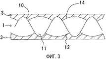 the filter is made by alternately stacking completely corrugated sheets of sheet metal, which have peaks and troughs alternating with each other in the direction transverse to the exhaust gas flow direction, and gas-permeable smooth plates constituting the filter elements.2. Устройство по п.1, в котором вершины имеют вогнутые промежуточные впадины, образованные посредством уменьшения высоты вершины; промежуточные впадины образуют перепускные участки, содержащие отводные участки, которые обеспечивают протекание выхлопных газов из соседних впадин, и отверстия, которые обеспечивают втекание выхлопных газов в одну из нижних по потоку вершин; впадины имеют выпуклые промежуточные вершины, образованные посредством уменьшения глубины впадин; проводящий участок образован промежуточной вершиной, двумя вершинами у впадины и гладкой пластиной, соприкасающейся с вершинами; при этом в случае увеличения давления в проводящем участке, по меньшей мере, часть выхлопных газов, протекающих по впадине, течет в соседние вершины через отводные участки.2. The device according to claim 1, in which the peaks have concave intermediate depressions formed by reducing the height of the peaks; the intermediate depressions form bypass sections containing outlet sections that allow exhaust gases to flow from neighboring depressions and openings that allow exhaust gases to flow into one of the downstream peaks; troughs have convex intermediate peaks formed by reducing the depth of the troughs; the conductive portion is formed by an intermediate vertex, two vertices at the cavity and a smooth plate in contact with the vertices; in the case of increasing pressure in the conductive section, at least a portion of the exhaust gases flowing through the cavity flows to neighboring peaks through the exhaust sections.3. Устройство по п.2, в котором вершины расположены напротив проводящих участков на протяжении гладких пластин.3. The device according to claim 2, in which the peaks are located opposite the conductive sections along smooth plates.4. Устройство по п.2, в котором промежуточные вершины образованы деформированием впадин, причем высота промежуточных вершин постепенно уменьшается по направлению к их верхнему по потоку концу.4. The device according to claim 2, in which the intermediate peaks are formed by deformation of the depressions, the height of the intermediate peaks gradually decreasing towards their upstream end.5. Устройство по п.2, в котором открытая площадь гофрированной пластины в проводящих участках, если смотреть сверху, равна или превышает 30% общей открытой площади гофрированной пластины.5. The device according to claim 2, in which the open area of the corrugated plate in the conductive sections, when viewed from above, is equal to or greater than 30% of the total open area of the corrugated plate.6. Устройство по п.2, в котором общий объем проводящих участков равен или превышает 50% общего объема вершин и впадин.6. The device according to claim 2, in which the total volume of the conductive sections is equal to or greater than 50% of the total volume of the peaks and troughs.7. Устройство по п.2, в котором гладкие пластины и/или гофрированные пластины содержат отверстия, проходящие от одной стороны к другой стороне, слой катализатора, содержащий металлический катализатор и пористый окисный носитель, причем отверстия сужены или заполнены катализатором до их размера, равного 200 мкм или менее.7. The device according to claim 2, in which the smooth plates and / or corrugated plates contain holes extending from one side to the other side, a catalyst layer containing a metal catalyst and a porous oxide carrier, and the holes are narrowed or filled with catalyst to their size equal to 200 microns or less.8. Устройство по п.7, в котором вершины расположены напротив проводящих участков на протяжении гладких пластин.8. The device according to claim 7, in which the peaks are located opposite the conductive sections along smooth plates.9. Устройство по п.2, в котором самый верхний по потоку перепускной участок образован впадиной, имеющей перевернутую промежуточную вершину, открытую на ее верхней по потоку стороне; высота перевернутой промежуточной вершины постепенно уменьшается в направлении вниз по потоку; и п