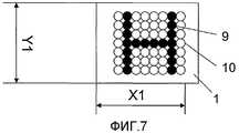 фиг.7 - схематичное изображение третьего воплощения изобретения, где краска наносится на точки к плоскому или гладкому слою 1, который находится в первом состоянии;7 is a schematic illustration of a third embodiment of the invention, where the paint is applied to the points to a flat or