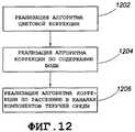 Обычные специалисты в данной области техники поймут, что определенные конкретные варианты осуществления изобретения могут не предусматривать все этапы, показанные на фиг.12. Можно пропустить любой из трех автономных алгоритмов. Например, если пробу текучей среды берут из пласта, который содержит только светлые нефтепродукты и газоконденсат, то можно пропустить алгоритм цветовой коррекции (показанный на этапе 1202). Кроме того, порядок, в котором осуществляются отдельные автономные алгоритмы, не является ограничительным признаком изобретения. Например, в некоторых конкретных вариантах осуществления первым выполняют алгоритм коррекции по содержанию воды (показанный на этапе 1204), а за ним - алгоритмы цветовой коррекции и коррекции по рассеянию. Порядок, в котором выполняются отдельные автономные алгоритмы, не следует считать ограничительным признаком изобретения.Those of ordinary skill in the art will understand that certain specific embodiments of the invention may not include all the steps shown in FIG. You can skip any of the three stand-alone algorithms. For example, if a fluid sample is taken from a formation that contains only light oil and gas condensate, then the color correction algorithm (shown in step 1202) can be skipped. In addition, the order in which individual autonomous algorithms are implemented is not a limiting feature of the invention. For example, in some specific embodiments, the water content correction algorithm (shown in step 1204) is first executed, followed by color correction and scattering correction algorithms. The order in which separate autonomous algorithms are executed should not be considered a limiting feature of the invention.