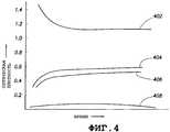 Влияние цвета обуславливает метановую разность (отображенную на кривой 408), приводящую к очень малой оптической плотности, и, как можно увидеть на фиг.4, соответствующая кривая может быть пологой или даже убывающей. Такая кривая метановой разности обеспечивает прогноз нулевого загрязнения даже тогда, когда загрязнение пробы текучей среды может оказаться значительным. Кроме того, поскольку газовый фактор определяют на основании отношения параметров канала метана к параметрам канала нефти, повышенный уровень кривых, отображающих каналы метана, нефти и базовый канал, вызывает неточности в прогнозе газового фактора.The influence of color causes the methane difference (shown on curve 408), resulting in a very low optical density, and, as can be seen in figure 4, the corresponding curve can be gentle or even decreasing. Such a methane difference curve provides a prediction of zero contamination even when contamination of the fluid sample can be significant. In addition, since the gas factor is determined based on the ratio of the methane channel parameters to the parameters of the oil channel, the increased level of the curves representing the methane, oil channels and the base channel causes inaccuracies in the forecast of the gas factor.