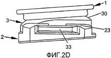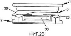 В варианте осуществления на фиг.1-3 ядро (3) имеет охватываемое средство (33) взаимодействия, комплементарное с охватывающим средством (23) взаимодействия, присутствующим на нижней пластинке (2). Охватываемое средство (33) взаимодействия ядра (3) представляет собой, например, запоры, имеющие по существу форму параллелепипеда, как особенно хорошо видно на фиг.1A и 1B. Охватывающее средство (23) взаимодействия, как особенно хорошо видно на фиг.3A и 3B, может состоять, например, из четырех стенок, расположенных попарно, на каждом из двух боковых краев нижней пластинки (2). Эти стенки могут быть изогнуты к центру протеза, чтобы охватывать по меньшей мере часть охватываемого средства (33) взаимодействия ядра (3) и избегать подъема ядра (3) и верхней пластинки (1). В этом варианте осуществления, иллюстрируемом на фиг.1-3, размеры каждого охватываемого средства (33) ядра (3) слегка меньше, чем размеры каждого охватывающего средства (22) нижней пластинки (2), чтобы обеспечить ограниченный люфт ядра (3) относительно нижней пластинки (2), как при сдвиге в соответствии с осью, по существу параллельной нижней пластинке (2), так и при вращении вокруг оси, по существу перпендикулярной нижней пластинке (2). Эти средства (23, 33) взаимодействия также предотвращают выталкивание ядра (3) из протеза в случае оказываемого слишком большого давления на протез.In the embodiment of FIGS. 1-3, the core (3) has a male interaction means (33) complementary to the female interaction means (23) present on the bottom plate (2). The covered means (33) of the interaction of the core (3) is, for example, constipation, having essentially the shape of a parallelepiped, as is especially clearly seen in figa and 1B. The enveloping interaction means (23), as is particularly clearly seen in FIGS. 3A and 3B, can consist, for example, of four walls arranged in pairs on each of the two side edges of the lower plate (2). These walls can be bent toward the center of the prosthesis to cover at least a portion of the covered means (33) of the interaction of the core (3) and to avoid lifting the core (3) and the upper plate (1). In this embodiment, illustrated in FIGS. 1-3, the dimensions of each male means (33) of the core (3) are slightly smaller than the sizes of each female means (22) of the bottom plate (2) to provide limited backlash of the core (3) with respect to the lower plate (2), both during shear in accordance with an axis substantially parallel to the lower plate (2), and when rotated around an axis substantially perpendicular to the lower plate (2). These interaction means (23, 33) also prevent the core (3) from being ejected from the prosthesis if too much pressure is exerted on the prosthesis.
