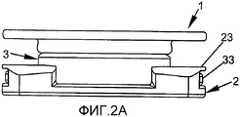 В другом альтернативном варианте осуществления, не показанном, нижняя пластинка (2) имеет штифты. Ядро (3), в качестве дополнения, имеет два углубления под своей нижней поверхностью. Размеры штифтов нижней пластинки (2) и углублений ядра (3) можно адаптировать в соответствии с желательным результатом посредством выбора незначительного люфта ядра при сдвиге и при вращении или какого-либо люфта.In another alternative embodiment, not shown, the lower plate (2) has pins. The core (3), as a complement, has two recesses under its lower surface. The dimensions of the pins of the lower plate (2) and the recesses of the core (3) can be adapted in accordance with the desired result by choosing a slight backlash of the core during shear and during rotation or some kind of backlash.