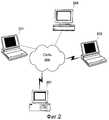 Одну или более пользовательских машин, используемых для реализации варианта осуществления изобретения, можно проиллюстрировать относительно архитектуры вычислительного устройства по фиг. 1, хотя такое ограничение не является присущим изобретению. Подразумевается, что реализация изобретения дополнительно или альтернативно будет использоваться с любым числом других типов устройств связи, включая, но не в ограничительном смысле, переносные устройства связи, сотовые телефоны и персональные цифровые информационные устройства (РДА).One or more user machines used to implement an embodiment of the invention can be illustrated with respect to the architecture of the computing device of FIG. 1, although such a limitation is not inherent in the invention. It is understood that the implementation of the invention will additionally or alternatively be used with any number of other types of communication devices, including, but not limited to, portable communication devices, cell phones and personal digital information devices (RDDs).