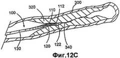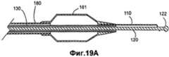 Еще одной дополнительной целью настоящего изобретения является создание инструмента для прохождения закупорки, который обладает, по меньшей мере, одной режущей кромкой (112С), расположенной на периметре (112Р) опорной полки, направленной радиально наружу и от отверстия в опорной полке, и в котором, по меньшей мере, одна режущая кромка выполнена с возможностью радиального врезания в ткань закупорки in vivo.Another additional objective of the present invention is to provide a tool for passing the blockage, which has at least one cutting edge (112C) located on the perimeter (112P) of the support flange, directed radially outward and from the hole in the support flange, and in which, at least one cutting edge is capable of radially cutting into the tissue blockage in vivo.