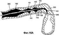На фиг.11А, 11В, 12А-12С, 13А, 13В и 14А-14С представлены местные виды направления и применения бурава для прохождения закупорок, соответствующего фиг.1,On figa, 11B, 12A-12C, 13A, 13B and 14A-14C presents local views of the direction and use of the drill for the passage of blockages corresponding to figure 1,